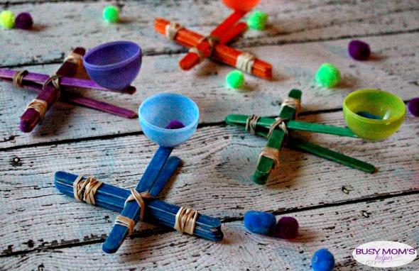 Who else is ready for Spring break? Ya, me neither! Luckily, I’ve got a bunch of fun busy activities for kids planned, so I won’t be hearing ‘I’m bored’ constantly. This Craft Stick Catapult is super easy to make – and really quick, too! The kids especially loved how they could customize it to be ‘their own’. Check it out!