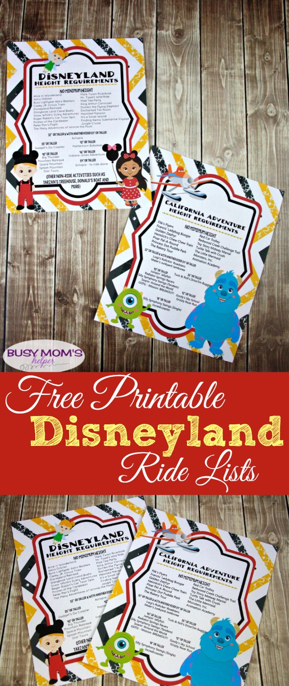Free Printable Disneyland Height Requirements