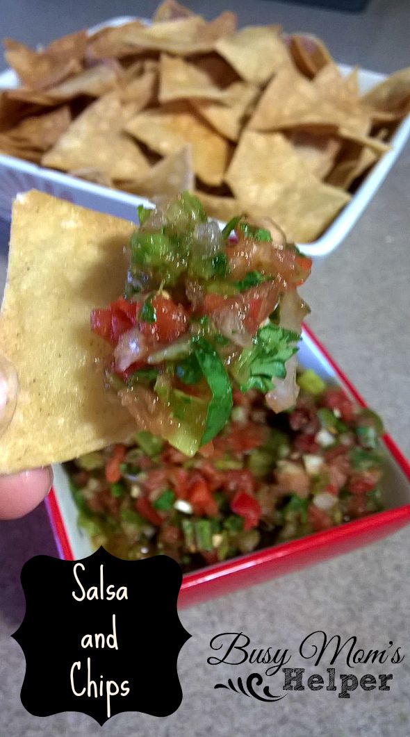 Easy, quick, cheap, and goofproof snack that’s easily customizable. Put the ingredients in a blender or food processor, blend and you have Fresh Salsa in as little as ten minutes! Also have delicious Homemade Chips that are better and cheaper than the store bought brand.