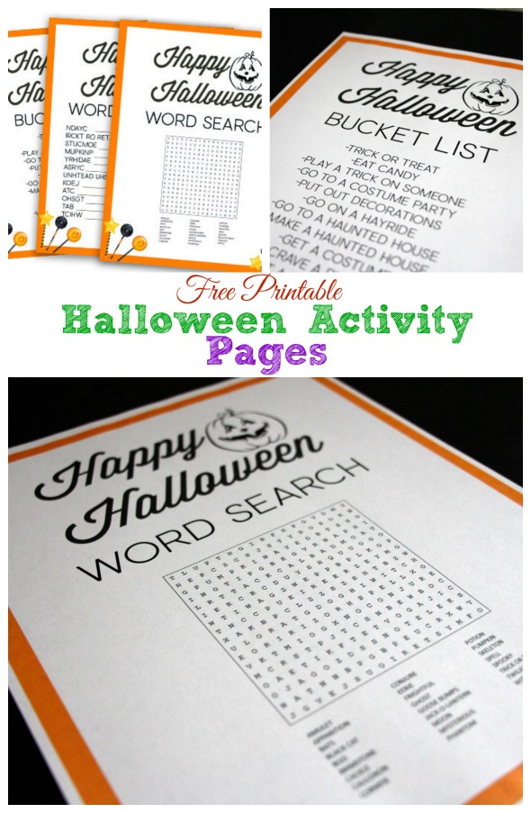 Whether you’re having a holiday party or just need an activity to keep the kids busy for a bit, these Halloween activity pages are just the ticket! You’ve got a fun Halloween bucket list, a word search, as well as a ‘challenging’ word scramble (with answers, don’t worry)…