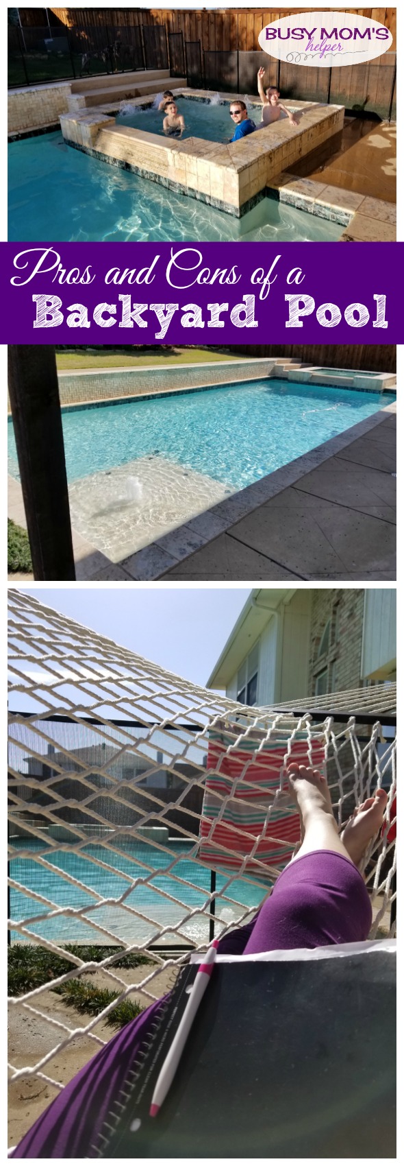 I’m not big into swimming, but my hubby and kids certainly are. Because of that, I’ve been wanting a backyard pool for awhile, and now that we have at our new house we’re learning everything that comes with pool ownership – the good and the bad! There’s so much that goes into it, so it’s important to be informed before making the decision. To help out, here’s some of the Pros and Cons of a Backyard Pool.