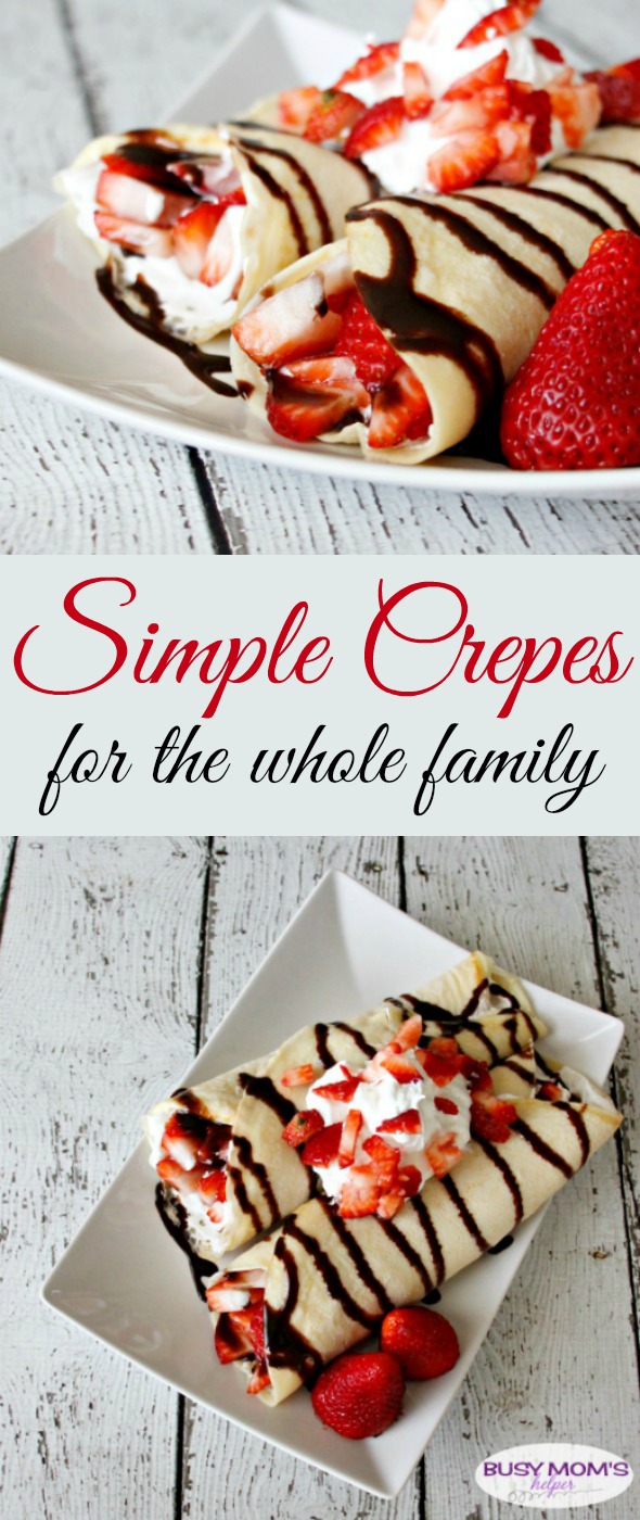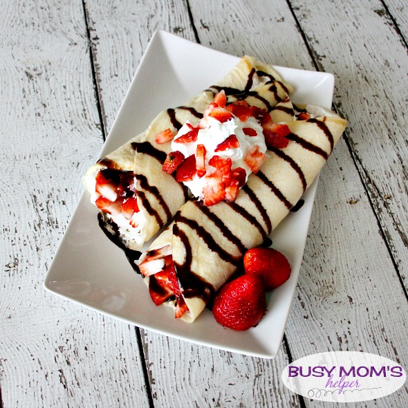 These crepes are one of the dishes that EVERYONE in the family loves, and asks for seconds. And thirds – and sometimes my kids will even eat five or six of them! Yup, definitely a winner in my books. We mix up the toppings and drizzles sometimes, but the overall favorite so far has been strawberries, whipped cream and chocolate syrup drizzled on top. Makes me think of my Chocolate Crepes with Strawberry Cream!