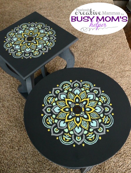 Have you ever started on a project, got part of the way through it and decided that you wanted to go a completely different direction? This is that project for me. I bought these two tables for really great prices and thought I might fix them up and sell them for lots more than the price I paid. Today I am going to tell you about my Stenciled Tables, how I stencil and the outcome of said tables. They look nothing like they did when I bought them, that’s for sure.