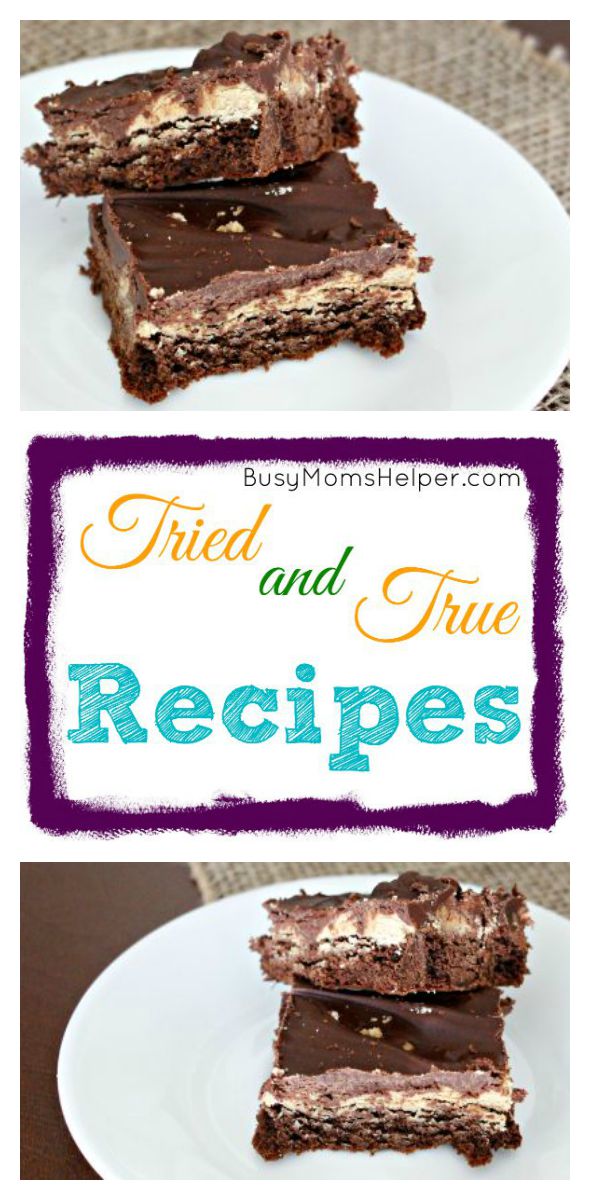Being a busy blogger myself, I’m often sad that I just don’t have the time to try hardly any of the recipes I drool over on other blogs! However, I really want to help support others and share the love – plus enjoy eating the creations! So I decided to try something new, and I’m calling it Tried and True Recipes! To start it off, I picked these Peanut Butter Cup Cookie Bars from Crazy for Crust!